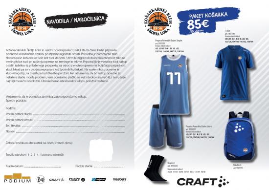 Košarkarski klub Škofja Loka in uradni opremljevalec CRAFT sta za člane kluba pripravila ponudbo košarkarskih artiklov po izjemno ugodnih cenah.