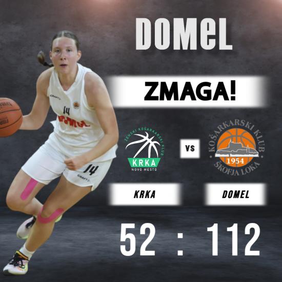 Košarkarice Domela so v prvi tekmi četrtfinala Pokala članic upravičile vlogo favoritinj proti Krki. V Mirni Peči so Škofjeločanke zbrale kar 112 točk in domačinke premagale s 60 točkami razlike.