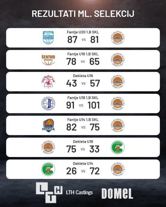 V zadnjih nekaj dnevih se je na tekmah pod okriljem KZS predstavilo kar 7 mlajših selekcij KK Škofja Loka. Do zmage so prišle ekipe Domel U14, U16 in U18, uspešni so bili tudi košarkarji LTH Castingsa U18.