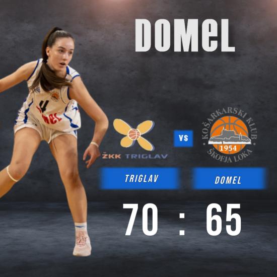 Košarkarice Domela so bile v tekmi 14. kola 1. SKL za ženske izjemno blizu presenečenja proti kranjskemu Triglavu. Domačinke so v ŠD Planina z zadeto trojko izsilile podaljšek, kjer so na koncu zbrale 5 točk več. Končni rezultat je bil 70:65. .jpg)