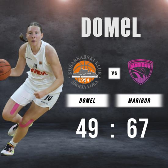 Košarkarice Domela so se po prvi polfinalni tekmi Pokala članic znašle v težkem položaju. V oslabljeni zasedbi so na domačem terenu proti Mariboru klonile z 49:67. |