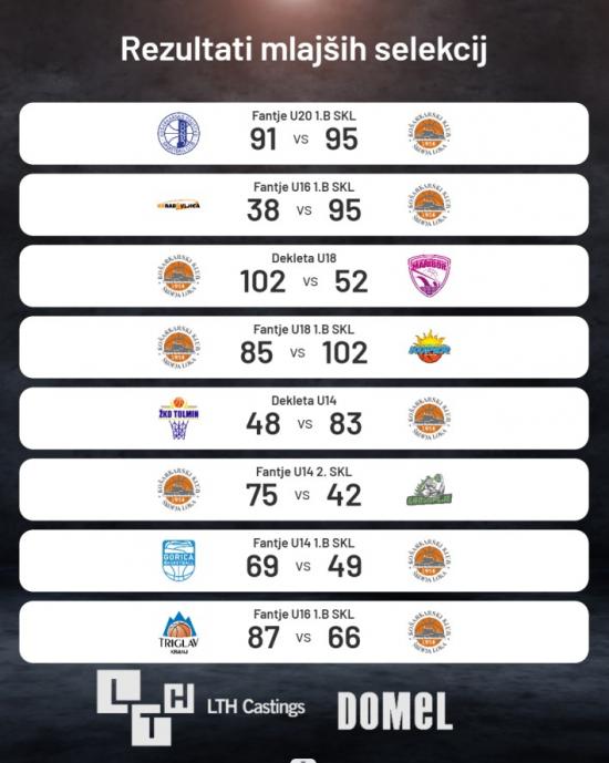Mlajše selekcije KK Škofja Loka v minulih dneh 63-odstotno uspešne. Do zmage so med drugim prišli mladinci LTH Castingsa, ki so na kolena spravili Ježico, izpostaviti pa velja tudi izjemno zmago deklet Domel U18.
