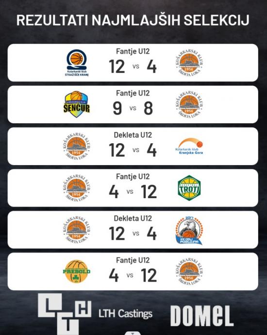 V minulem vikendu so mlajše selekcije KK Škofja Loka odigrale kar 11 tekem. Še naprej neporažene ostajajo košarkarice selekcije Domel U12, do nove zmage tudi dekleta U4, uspešni tudi košarkarji LTH Castingsa U12.